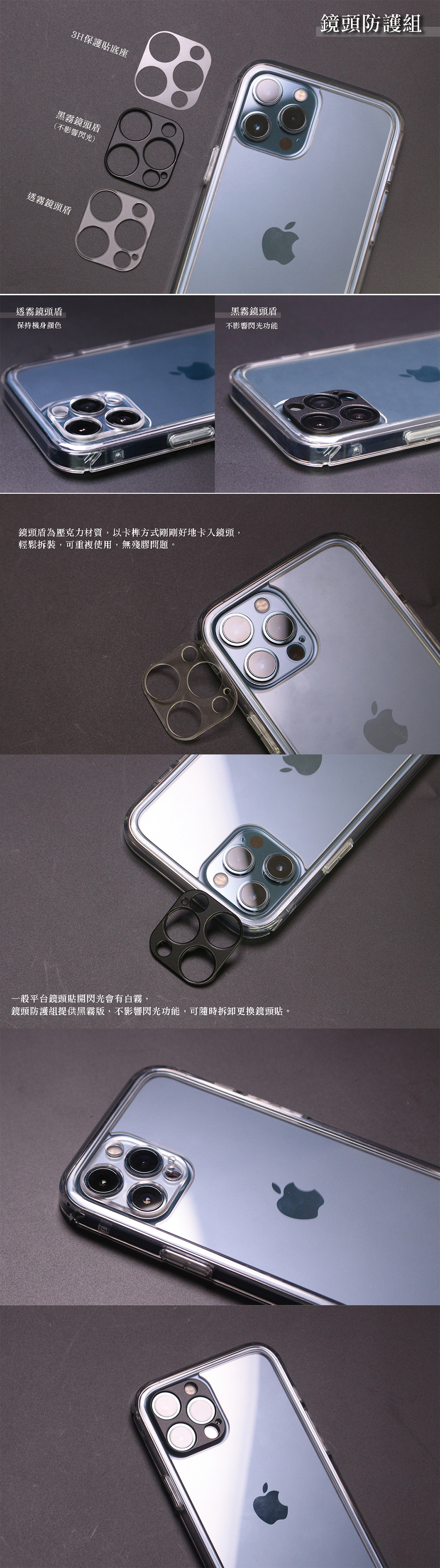 3H保護貼底座、透霧鏡頭盾、黑霧鏡頭盾、附件包
