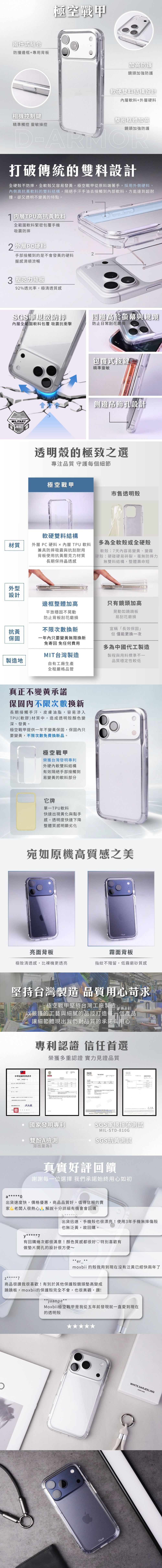 Moxbii D Armor 真正台灣製造,自家生產,獨家透明雙層「外硬內軟」設計,超強軍規防撞卻不變黃,非一般硬底軟邊。磁圈改置背板內側並升級為高等級逐粒磁石,磁力大增,提供10種顏色自由搭配。